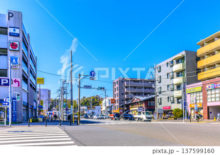 日本の横浜都市景観 横浜市営地下鉄 新羽駅などを望む。澄み渡る青空が広がる…=7日