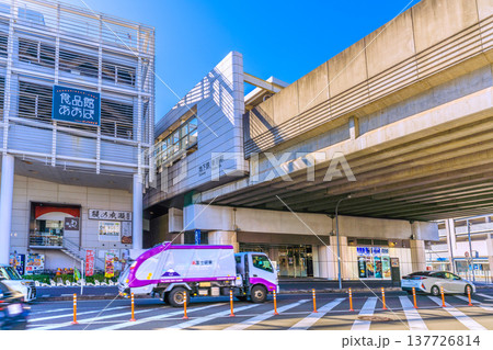 日本の横浜都市景観 横浜市営地下鉄 新羽駅前などを望む…=3月15日