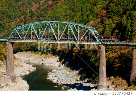紅葉の渓谷を横切る2700系気動車・南風