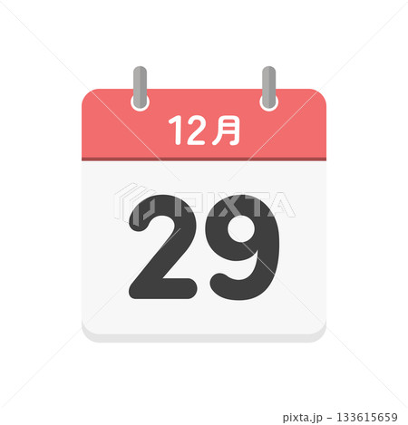 12月29日の日めくりカレンダーのアイコン - 12/29の日付入りのシンプルな日本語の暦のイラスト