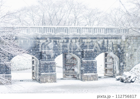 新潟 雪降る水門(加治川治水記念公園)