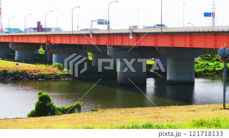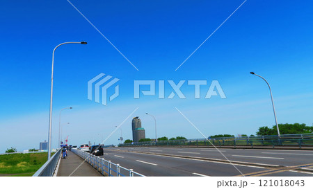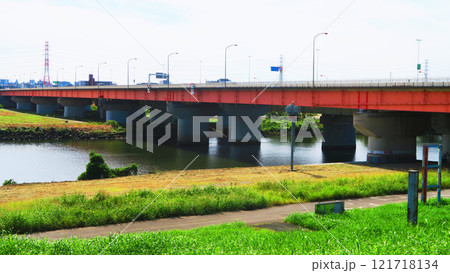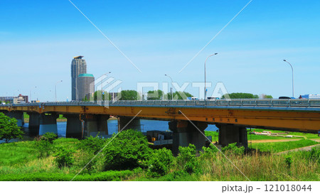 埼玉県川口市と東京都北区をつなぐ国道122号線の新荒川大橋の風景