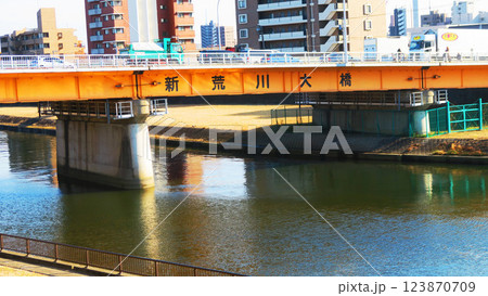東京都北区岩淵町と埼玉県川口市舟戸町をつなぐ新荒川大橋の風景