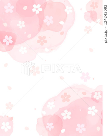 ピンクの水彩風背景と桜の模様を組み合わせた春をイメージした背景イラスト 縦型バージョン