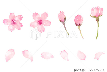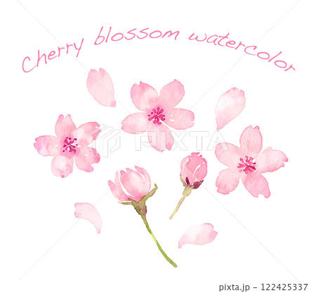 水彩風のにじみのある桜の手描きイラスト(集合)