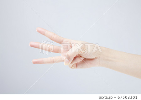 三本指を立てる女性の手