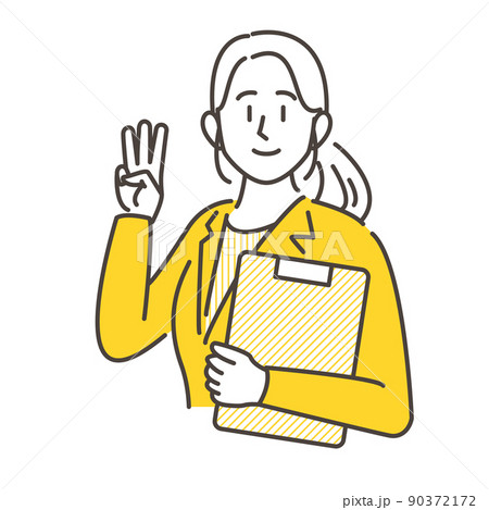 3本の指を立てた若い女性ビジネスパーソン【ベクターイラスト素材】