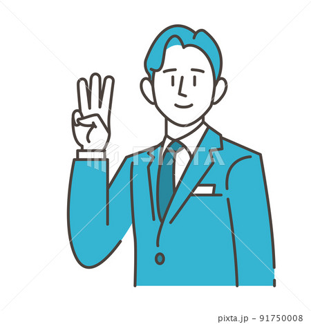 3本の指を立てて笑顔の男性ビジネスパーソン【ベクターイラスト素材】
