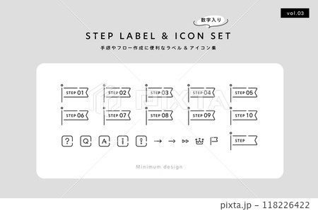 手順やフロー作成に便利なラベルとアイコンのあしらい素材セット3