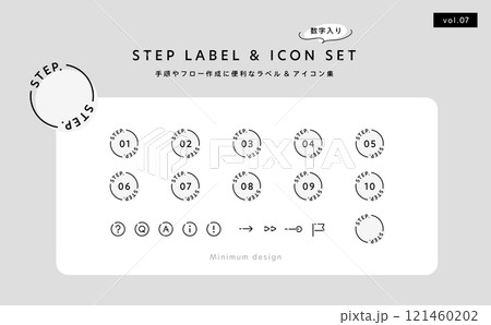 数字入りフローラベルとステップアイコンの手順用あしらい素材セット7