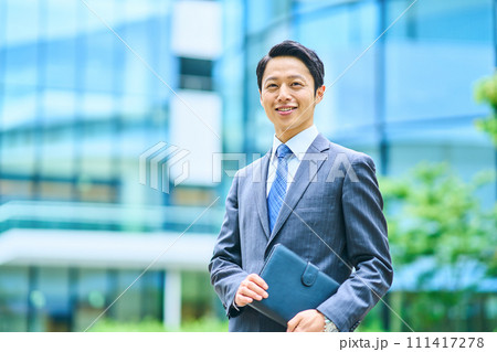 スーツ姿のビジネスマン 夜の街角 ポートレート