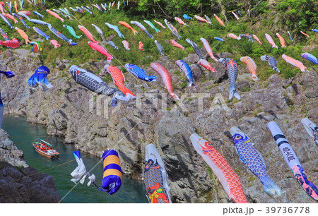 鯉のぼりと新緑の大歩危峡