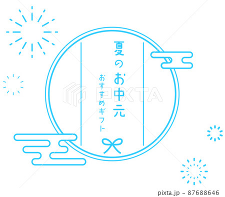 夏のお中元、和風でシンプルな線画、336x280
