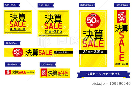 スタイリッシュな決算セールのバナーセット 広告 テンプレート 黄色