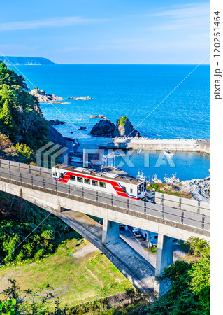三陸鉄道 青い海を背景に走る列車(吉浜-唐丹)