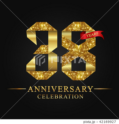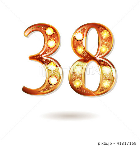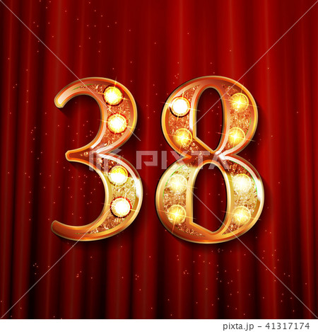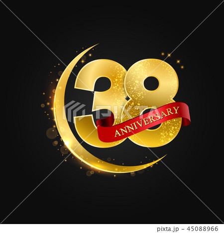 38 years anniversary ribbon golden number.
