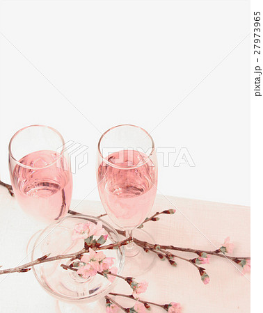 桜の花とロゼワイン