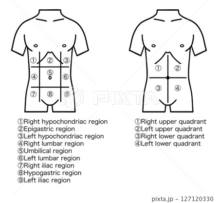 腹部の区分図、9区分と4区分、線画