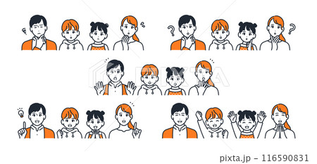 4人家族 アイコン 表情 セット 素材