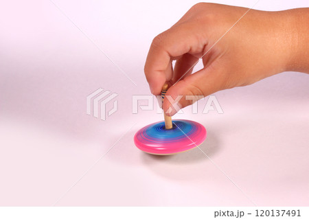 コマで遊ぶ子どもの手