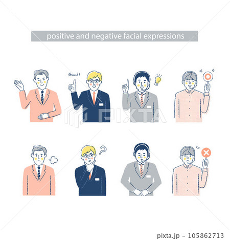 4人のビジネスマンの表情-QRST ネガティブ&ポジティブ