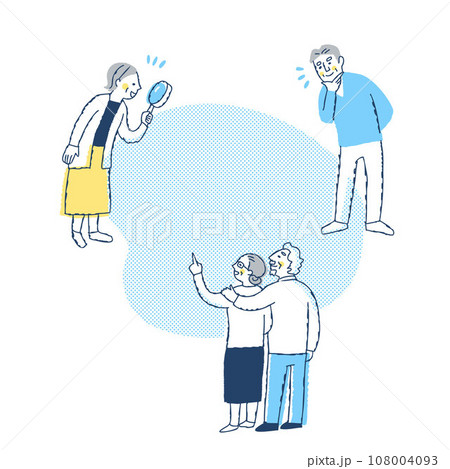 さまざまな方向を見ている数人のシニア男女