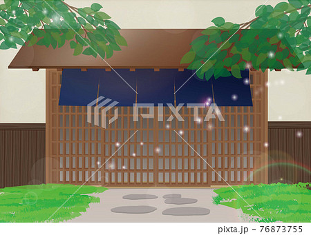 和風エントランス(開いたドア、のれん)