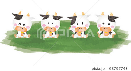 座っているかわいい4頭の牛。イメージイラスト(ベクターデータ)