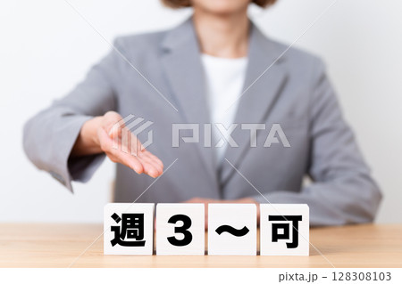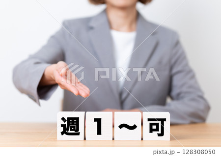 週3〜可のブロックとスーツを着たミドル女性ビジネスウーマン