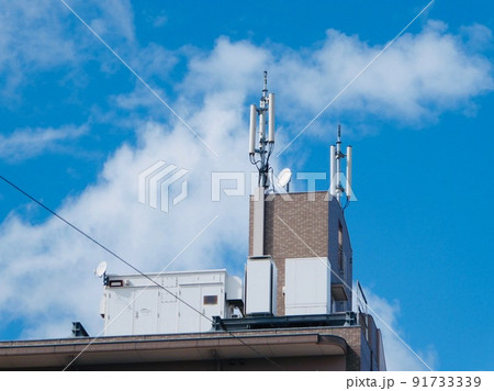 携帯電話基地局×スマホ 通信テクノロジーのピクトグラム 白背景