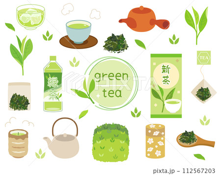 新茶・緑茶・煎茶などのお茶をイメージしたイラストのセット