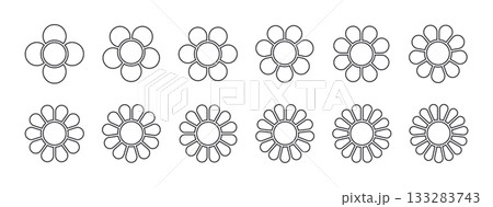 Set of flower shapes. Floral diagrams with petals from 3 to 12 for data presentation isolated on white background. Infographic templates. Vector flat illustration