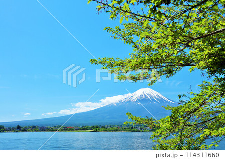 《山梨県》初夏の富士山・新緑の河口湖湖畔