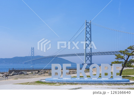 BE KOBEモニュメントと明石海峡大橋(アジュール舞子)