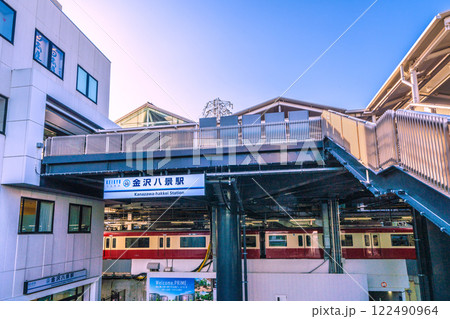 日本の横浜都市景観 京急電鉄 金沢八景駅などを望む