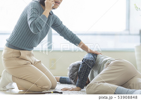 急病で倒れた母親のために救急車を呼ぶ娘 親子 母子