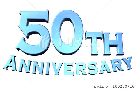 3DCG文字「50th Anniversary/50周年」ブルー,青