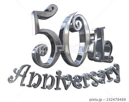 3DCG文字「50th Anniversary/50周年」シルバー,銀