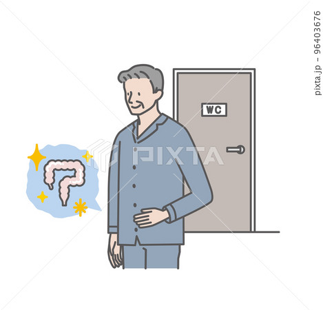 便秘症のシニア男性(下腹部が張り、不快感がある)