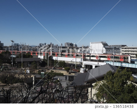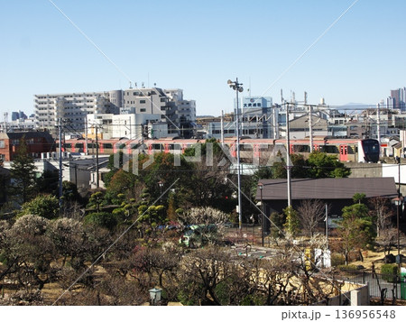 池上梅園から望む都営浅草線の車両と大田区の街並み