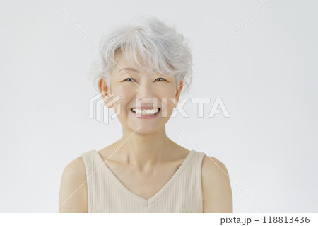 グレーヘアのシニア女性のポートレート ビューティ