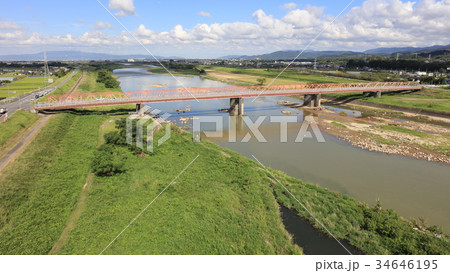 [空撮]筑後川 筑後川橋(通称名、片の瀬橋)大刀洗町と久留米市を結ぶ筑後川上の橋