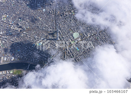 スカイツリー・雲に覆われるスカイツリー・空撮