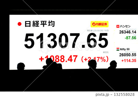 日本の東京都市景観初5万1000円台乗せ・5万1307円65銭株価/終値。爆騰アドテスト寄与=29日