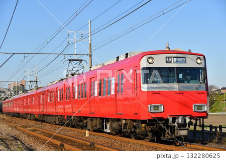 夕暮れの鉄道 乗り物 名鉄 6500系