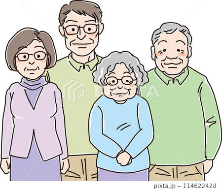 色々な年代の人物_横向き_普通の表情_4人家族_高齢者4人_60代_70代_80代