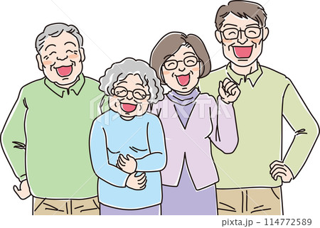 人物イラスト_笑顔の人々_色々な年代の人たち_高齢者男女4人