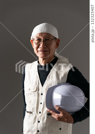 デニムジャケットと帽子を着用した年配の日本人男性のポートレート