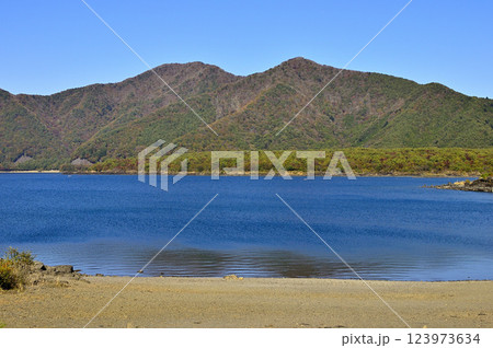 山梨県 本栖湖畔より望む紅葉の竜ヶ岳