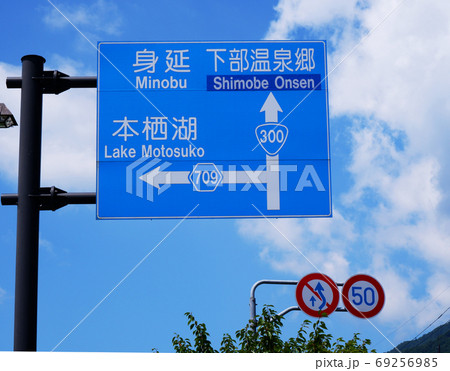 身延・下部温泉郷・本栖湖への標識